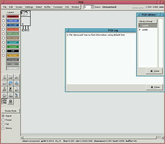 Geda PCB utility startup screenshoot