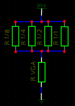- Base resistor value = (1/8+1/4+1/2+1/1)/(1/((R_vga*U_vcc)/U_vga-R_vga)) = 522.3214Ω